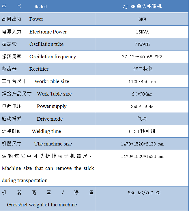 用途:適用于汽車(chē)篷布帆布接駁、帳篷布熔接、電影幕布熔接、膜結(jié)構(gòu)拼接、戶(hù)外膜結(jié)構(gòu)焊接、膜結(jié)構(gòu)熔接、戶(hù)外遮陽(yáng)布熔接、廣告噴繪布焊接、PVC布熔接或含有PVC成分的任何材質(zhì)的軟性塑膠塑料的高周波熔接或拼接。