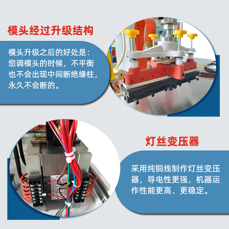 我司以開發(fā)熔焊接設(shè)備為主導(dǎo),其熔焊接設(shè)備有:高周波塑膠熔接機其機適用于吸塑罩及吸塑罩的熔接,熔接各種PVC壓花、真皮壓花、合成皮、摩托車坐墊、鞋類配件、軟硬膠片、各種精細(xì)文具、玩具、柔軟線PVC膠盒壓痕、單雙面吸塑包裝等) 、超聲波塑焊機 (硬塑異件焊接)吸塑包裝機 (吸塑件和紙卡的封邊)、熱壓機、高頻機、高頻熱合機、收縮包裝機,電池包裝機,螺絲包裝機,筷子包裝機,菜刀包裝機,企業(yè)對所有銷售的機器均有售后服務(wù),機器的配件如:電子管、電容、電阻、變壓器、整流塊、二極管、振蕩桶(高頻桶)、高溫膠布、銅釘、發(fā)熱片等機器及模具的配件均有出售。