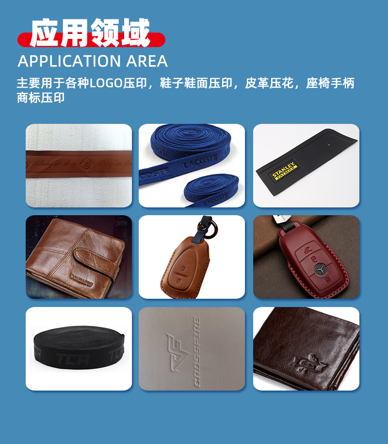 適用范圍:鞋面、皮包/帆布、家具汽車門、坐椅手柄、坐墊、文具套件、商標(biāo)等縫合壓花壓印。