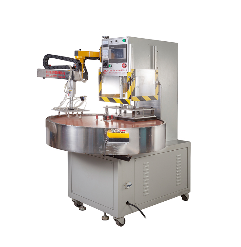 1.操作簡便:只要選擇延時時間、加熱時間與冷卻時間及加熱電流轉(zhuǎn)換檔位,轉(zhuǎn)盤自動旋轉(zhuǎn),人工放材料及產(chǎn)品,壓好產(chǎn)品自動轉(zhuǎn)到機械手位置,機械手取出產(chǎn)品,機器的延時系統(tǒng)、加熱系統(tǒng)及冷卻系統(tǒng)便會自動操作,完成封合過程。